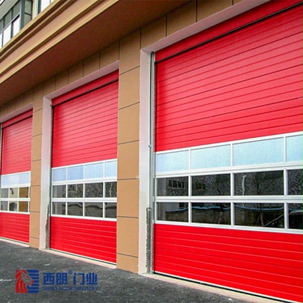 消防中心车库门选用西朗门业生产的提升门,具备工业提升门的选购三大原则,即安全性、实用性、整体性。
