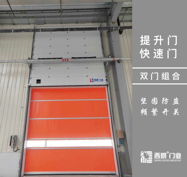 快速门提升门的组合门,提升门是安装在快速门外一层的,使用时把提升门打开,而快速门处正常关闭状态。考虑到在大型厂房中,叉车运输通过比较多,快速门采用拉链式结构的快速门,具有自动复位功能,意思就是即使叉车不小心撞倒快速门上,导致门帘与轨道分离,但是只要重新启动快速门就可以恢复状态。而电动提升门可以抵抗强风,在空旷的场地上,风沙力度比在城市强,所以在厂房安装提升门无疑可以起到保护效果。