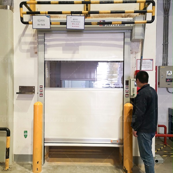 密封性能:门帘底部U型气囊可与不平整地面严密贴合,门框双侧密封毛条防尘、防虫。