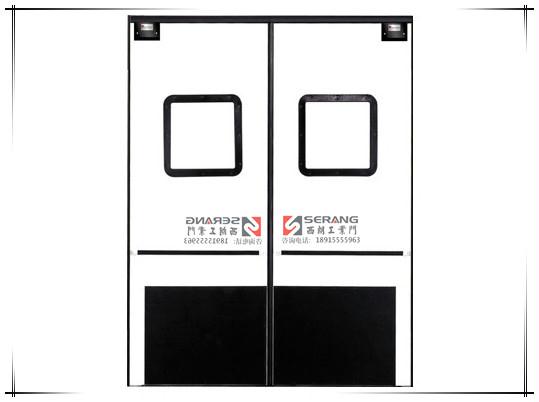 自由门门体采用高性能的保温材料,具有保温、隔音、使用寿命长、环保的特点,门板表面为ABS板,多种颜色可以选择,具有良好的耐冲击性。门体厚度为40mm。门体四边安装有特殊设计的铝合金型材,能降低门体四周的磨损,也可以加装密封条,较好地防止室内能量的流失。可视窗口为符合安全标准的双层有机玻璃制成。