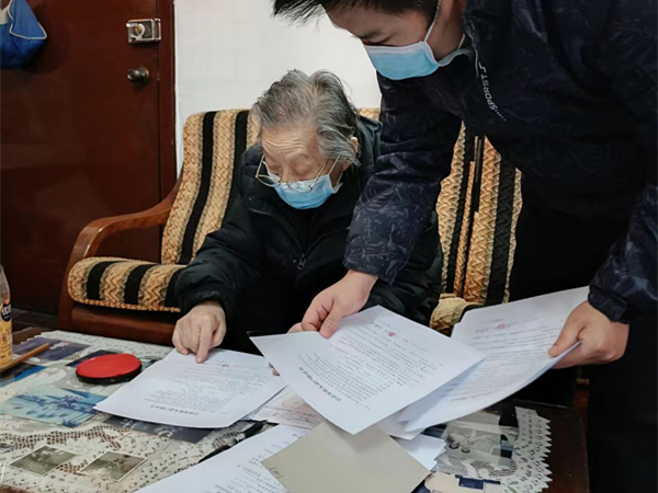 因高龄老人行动不便,武汉城投房产集团第一分公司房管工作人员来到80余岁的市民许爱妹家中,开展上门服务,现场为老人办理公房使用权过户确认手续,为老人解决燃眉之急。