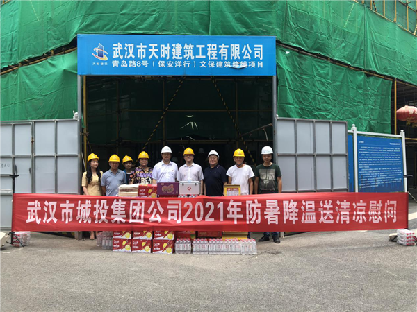 连日来,武汉烈日炎炎,热浪袭人。为切实保障广大职工的生命安全和身心健康,更好的开展日常工作,7月底至8月初,市城投集团、房产集团、天时公司先后对项目工地开展“高温慰问送清凉”活动,向炎炎夏日奋战在各岗位一线职工致敬!