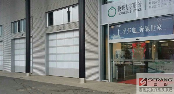 下图为奔驰汽车4S店专用透明提升门,门框为订制奔驰灰色。
